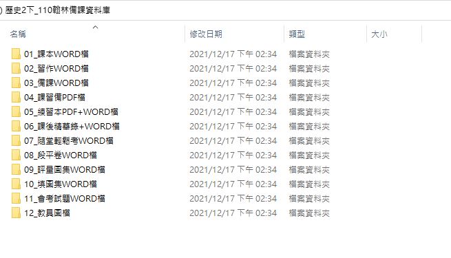 110學年下學期 國中 翰林版 歷史備課資料庫 2年級(含課本、卷類資源、備課用書、習作含解答、教學輔助資源)教學光碟