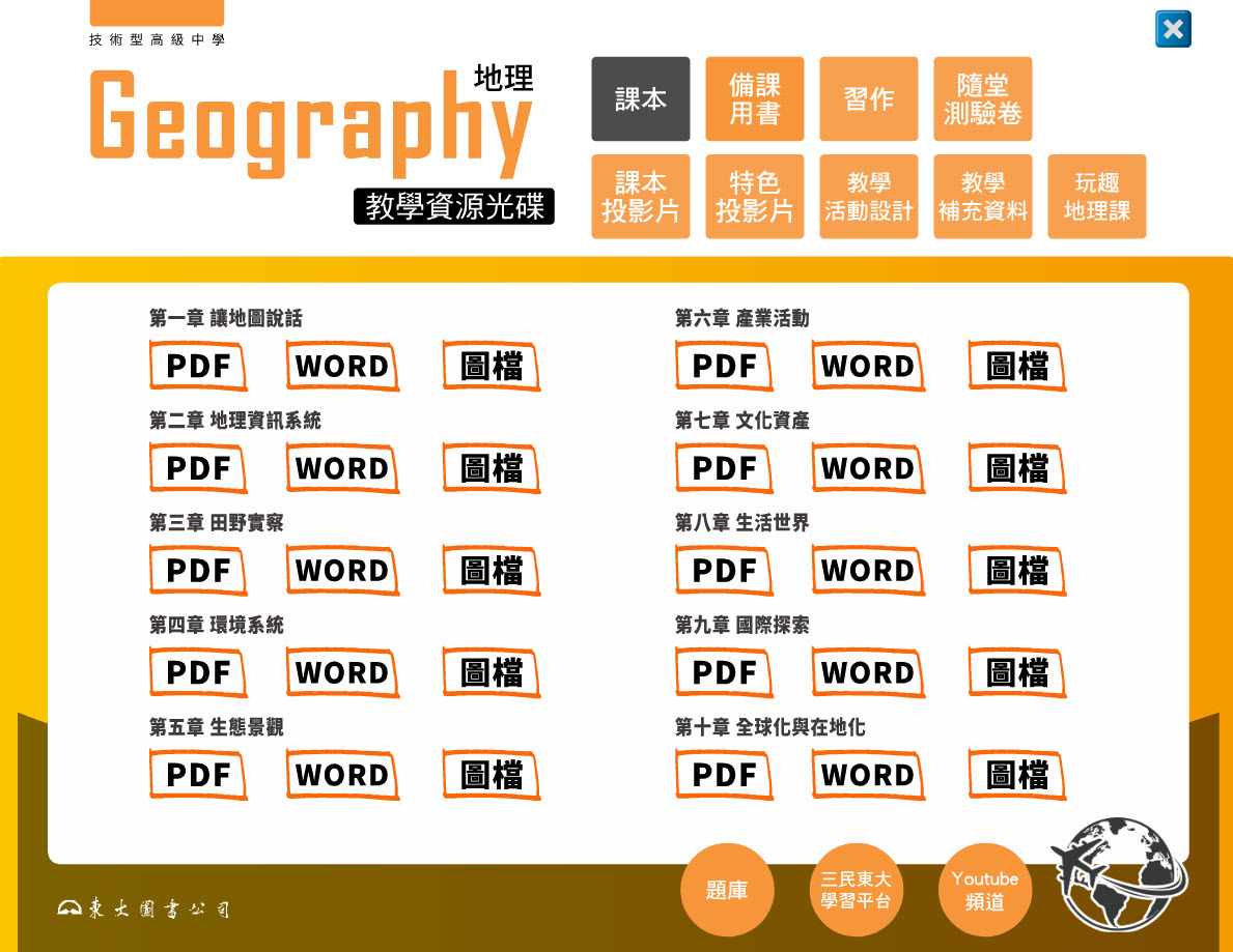112學年 技術高中命題光碟、教學光碟 三民東大版 地理科(全) 題庫光碟、教學光碟
