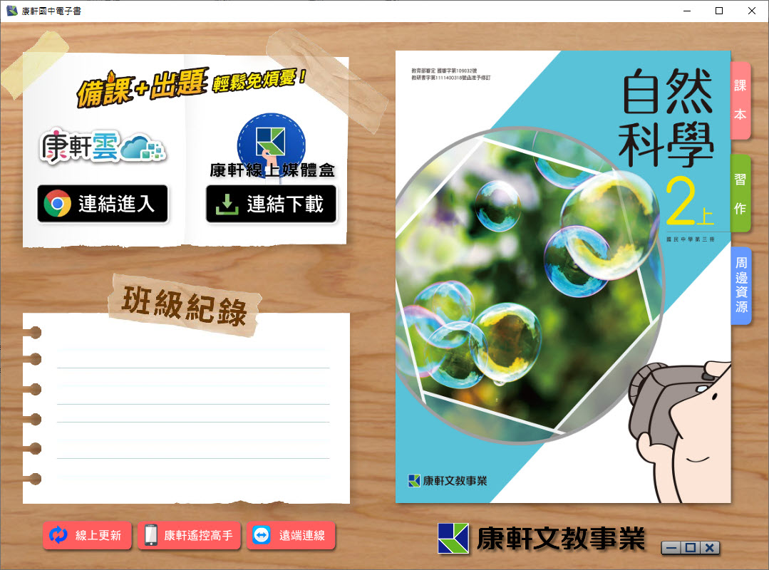 112學年上學期 國中 康軒版 自然電子書 2年級(含課本、活動紀錄簿含解答、教學資源)教學光碟