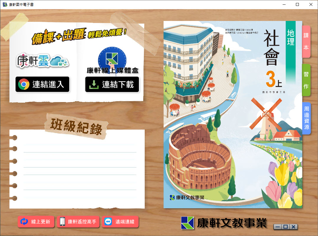 112學年上學期 國中 康軒版 地理電子書 3年級(含課本、習作含解答、教學資源)教學光碟