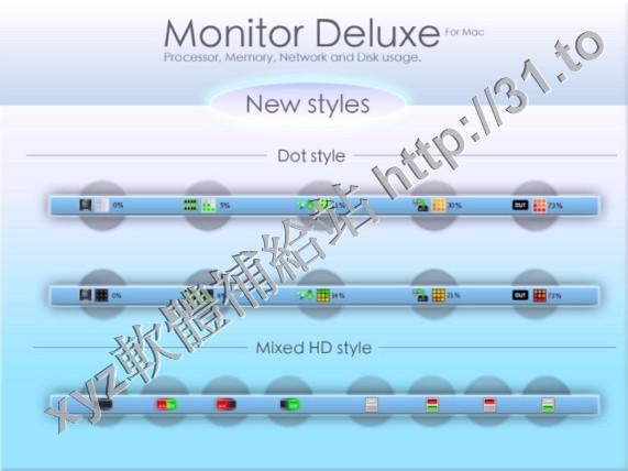 • Monitor Deluxe v1.1 MacOSX 英文正式版(顯示CPU,內存,網絡和磁盤使用情況的軟體)