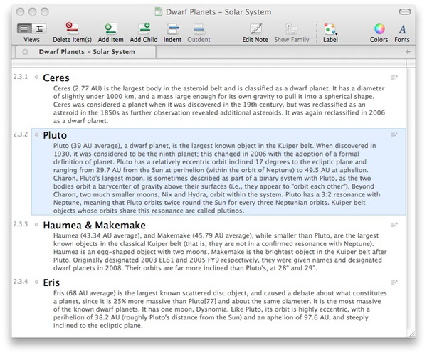 Tree is an outliner featuring a horizontally expandable tree view.