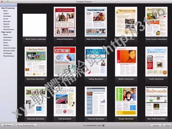 Pages starts with an enhanced Template Chooser that lets you skim