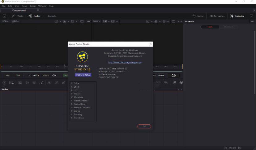 較大的設施可以選擇購買Fusion Studio以獲得更多高級功能,包括高達32K,32K的高解析度輸出,協力廠商OFX外掛程式支援,基於網路的分散式渲染,以及3D立體和光流分析工具。