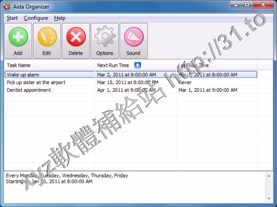 • Aida Organizer v1.4 英文正式版(消息提醒軟體)