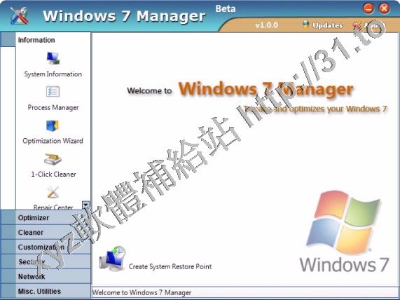 Widnows 7總管是優化和設置Windows 7的軟體,它裡面集成了超過30個不同的功能,
