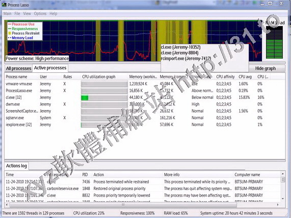 同時它還具備前台進程推進、工作集修整、進程黑名單等附加特性。Process Lasso 對您系統的優化